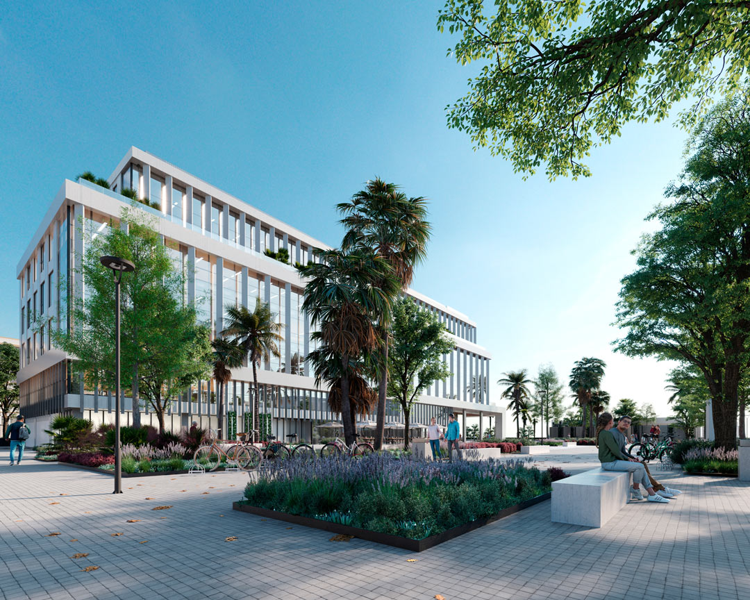 Con una superficie de edificabilidad de 9.500 metros cuadrados, el edificio dará cabida a un total de 750 trabajadores, contando con espacios modulares flexibles a la necesidad de cada empresa y con terrazas panorámicas con vistas al Mediterráneo, en las que se podrán celebrar eventos o reuniones. Asimismo, el edificio dispondrá de 200 plazas de aparcamiento subterráneo.