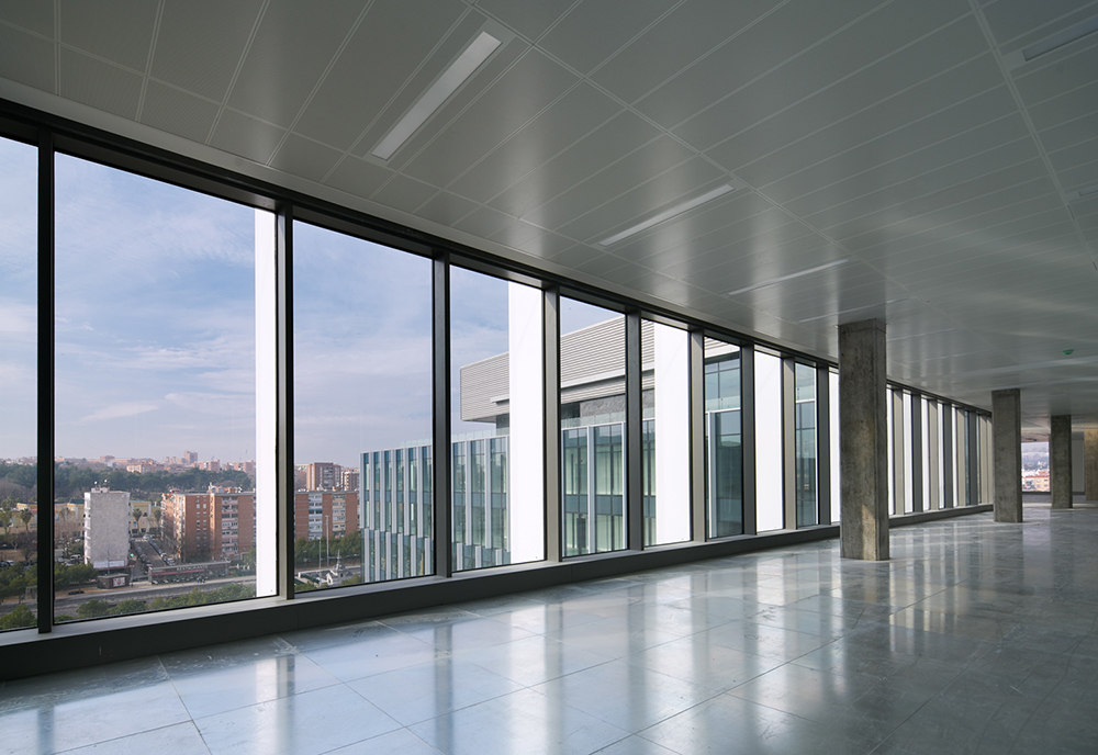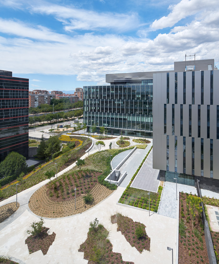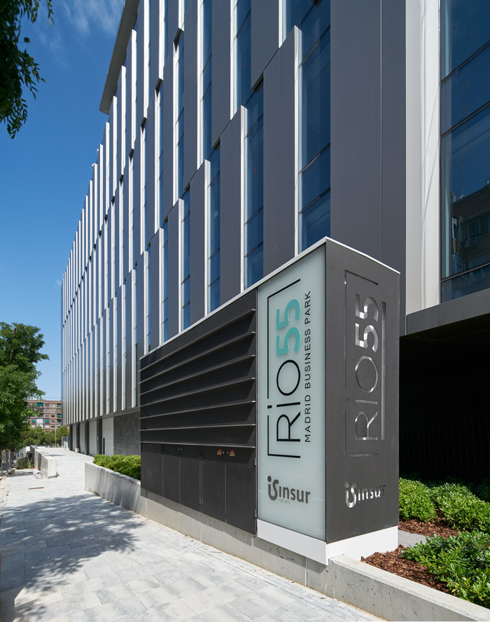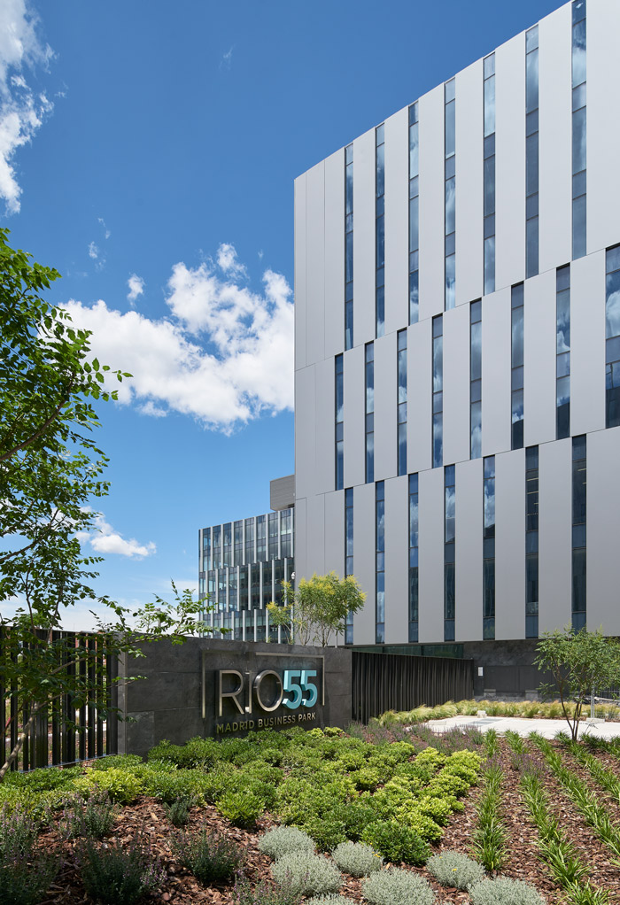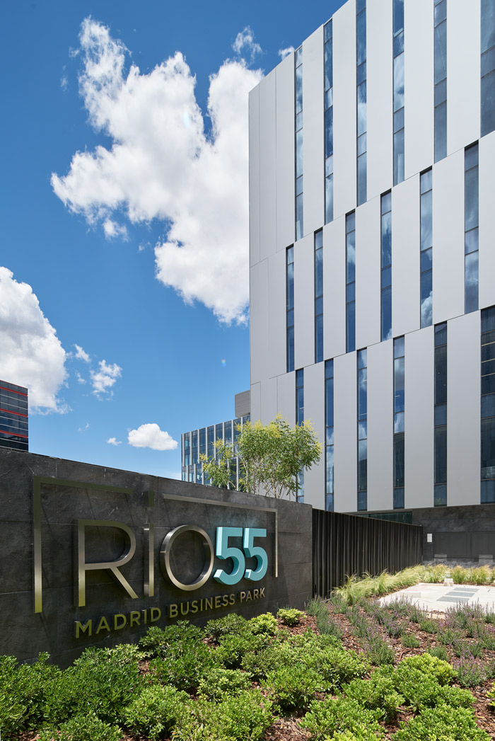 RÍO55 se posiciona como un valor distintivo por su arquitectura contemporánea y la calidad de sus materiales, por sus 8.648 m2 de zonas verdes (4.982 m2 privativos), por ser un edificio exento que ofrecen gran luminosidad a través de sus cuatro fachadas y por la operatividad profesional de sus plantas amplias y modulables.