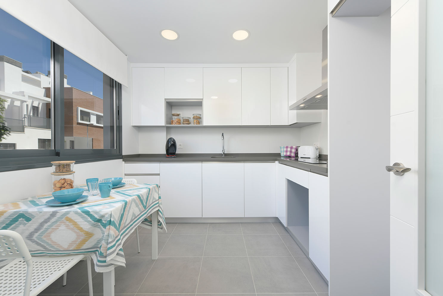En cuanto a las calidades destacamos cocina amueblada, con campana extractora y placa vitrocerámica, y la instalación de aire acondicionado por conductos en salón y dormitorios.
