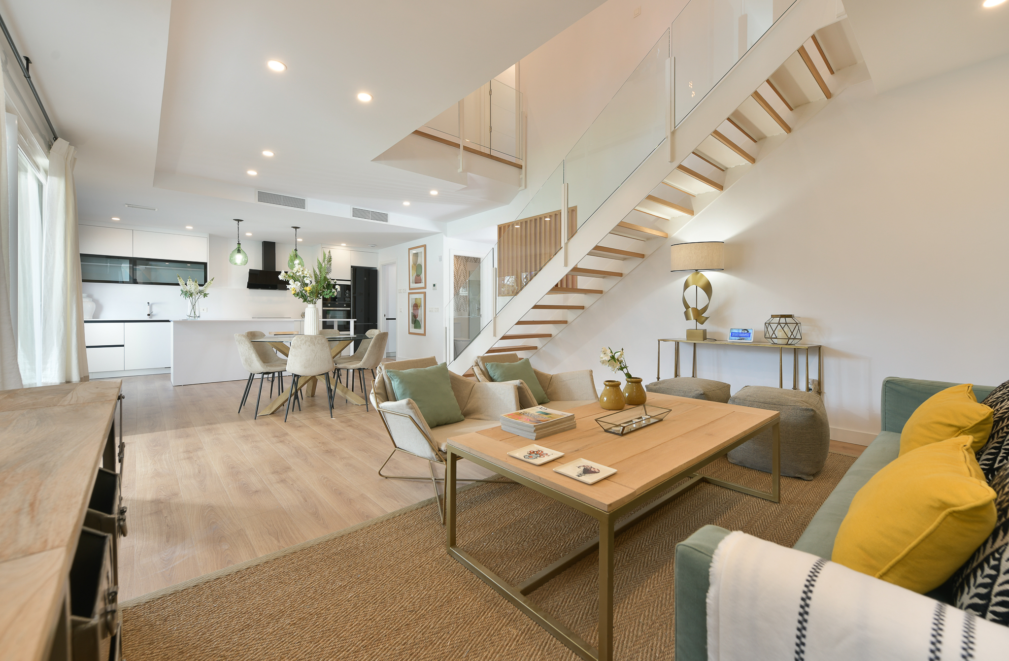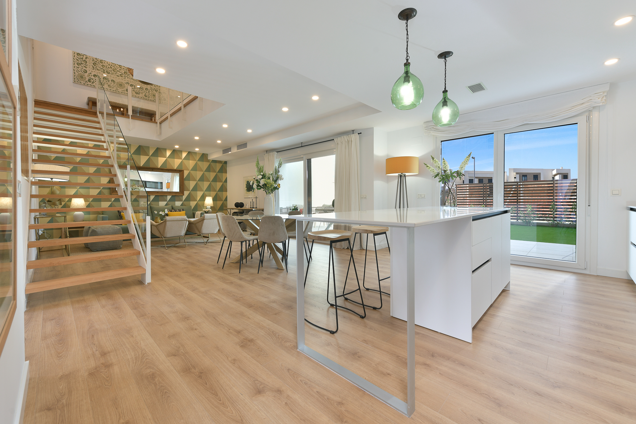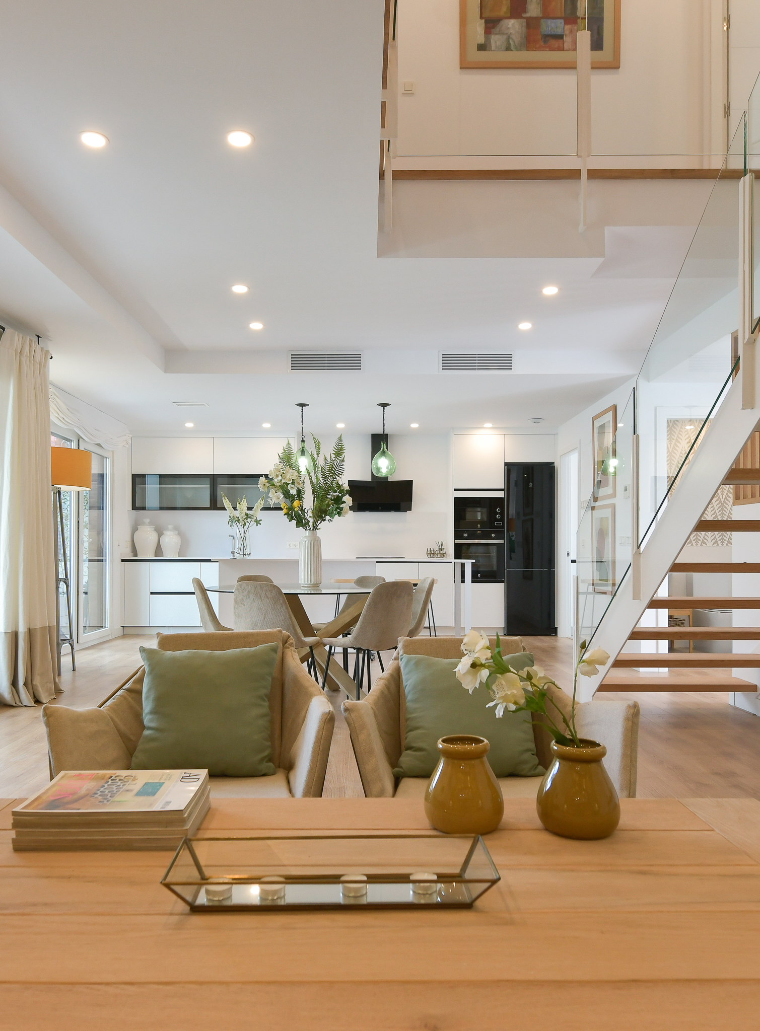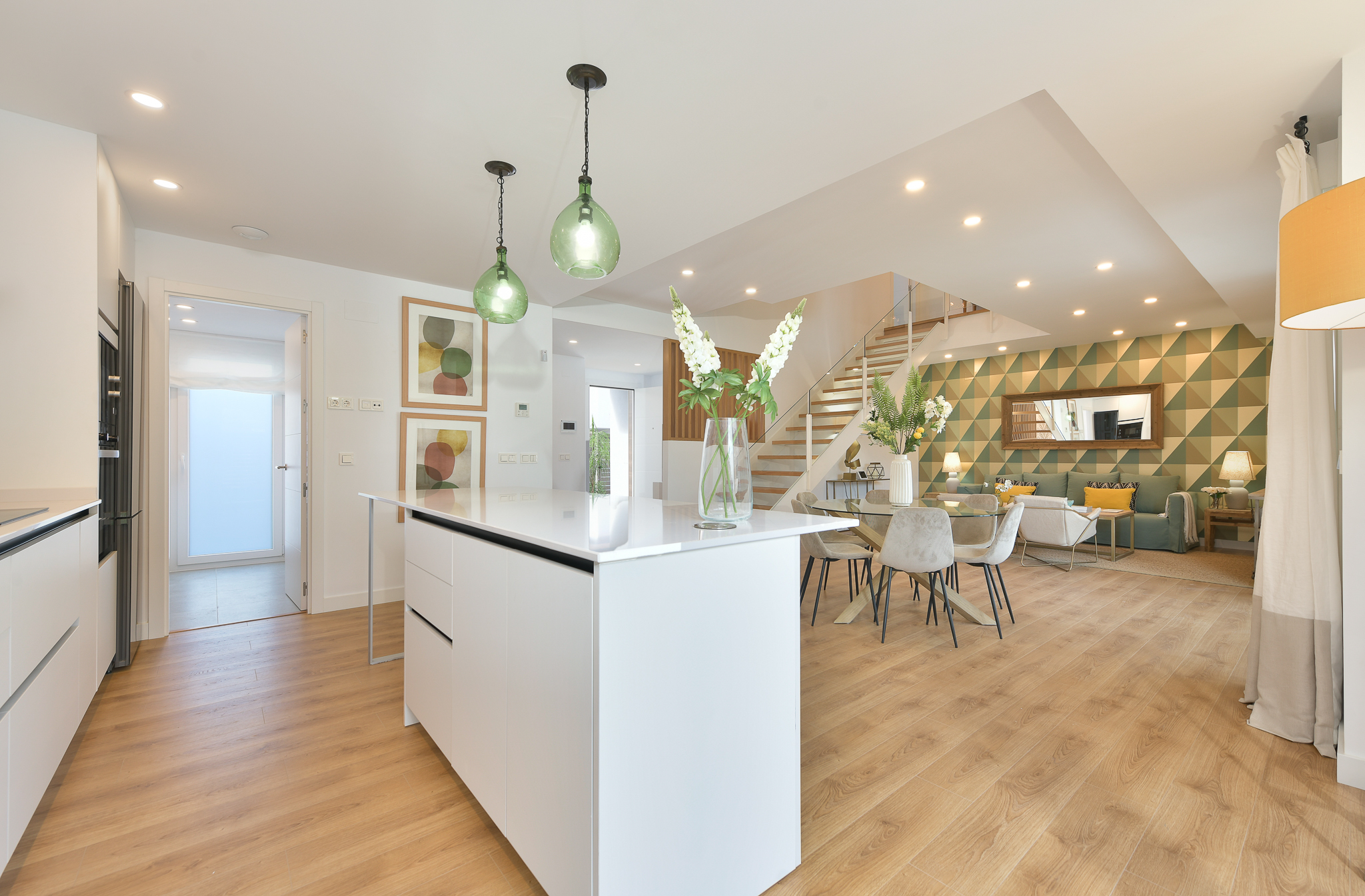 Las viviendas cuentan con dos plantas con un espacioso salón a doble altura con cocinas integradas de hasta 50 m², creando un espacio totalmente diáfano con posibilidad de separar ambas estancias. Destaca también los amplios vestidores de casi 20 m² que ofrecen los dormitorios principales. Las parcelas tienen capacidad para hasta dos plazas de aparcamiento cerrado.