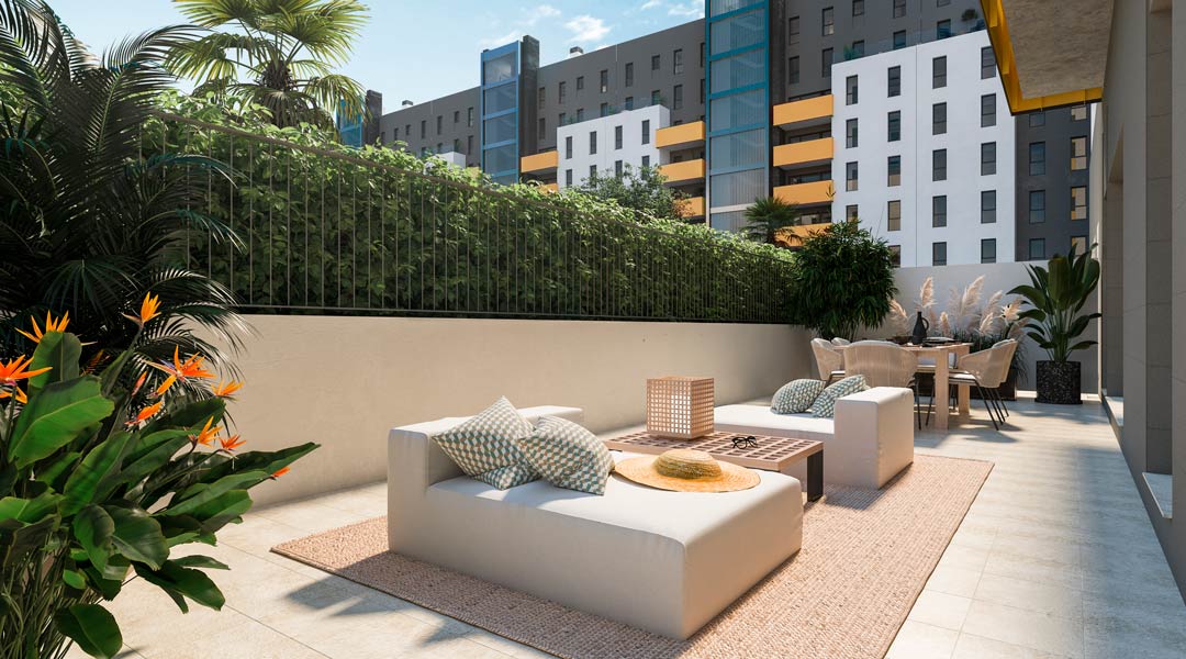 Pisos de 2, 3 y 4 dormitorios con amplias terrazas, espectaculares áticos y plantas bajas. Distintas tipologías de viviendas diseñadas para disfrutar del máximo confort, con espacios amplios, diáfanos y flexibles y múltiples opciones para crear estancias abiertas, integrando el salón con la cocina. La promoción se entregará con las cocinas equipadas, así como con garajes y trasteros (no incluidos en el precio).