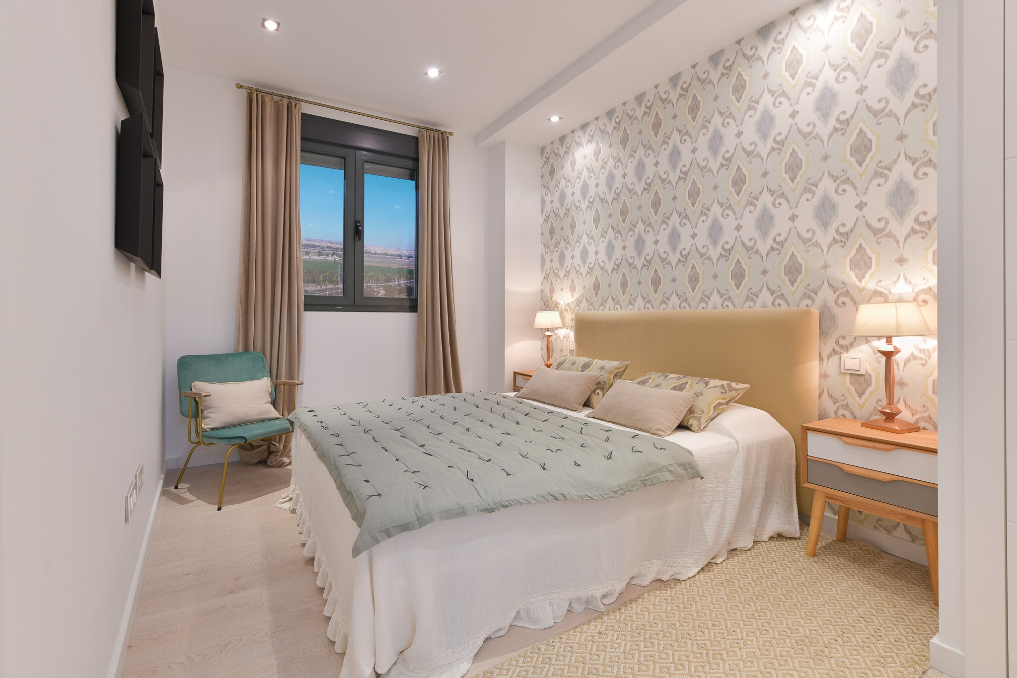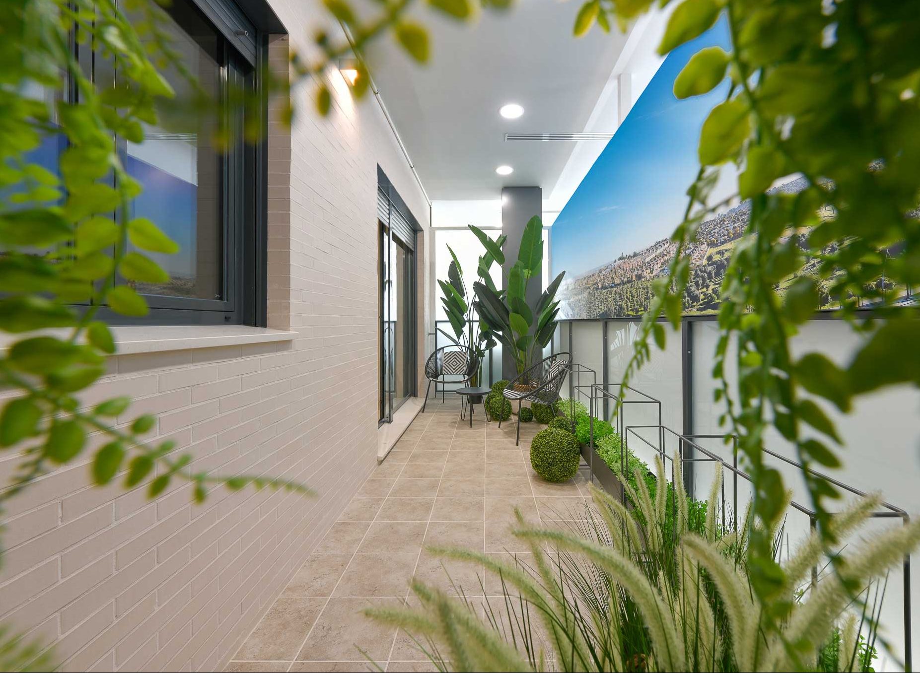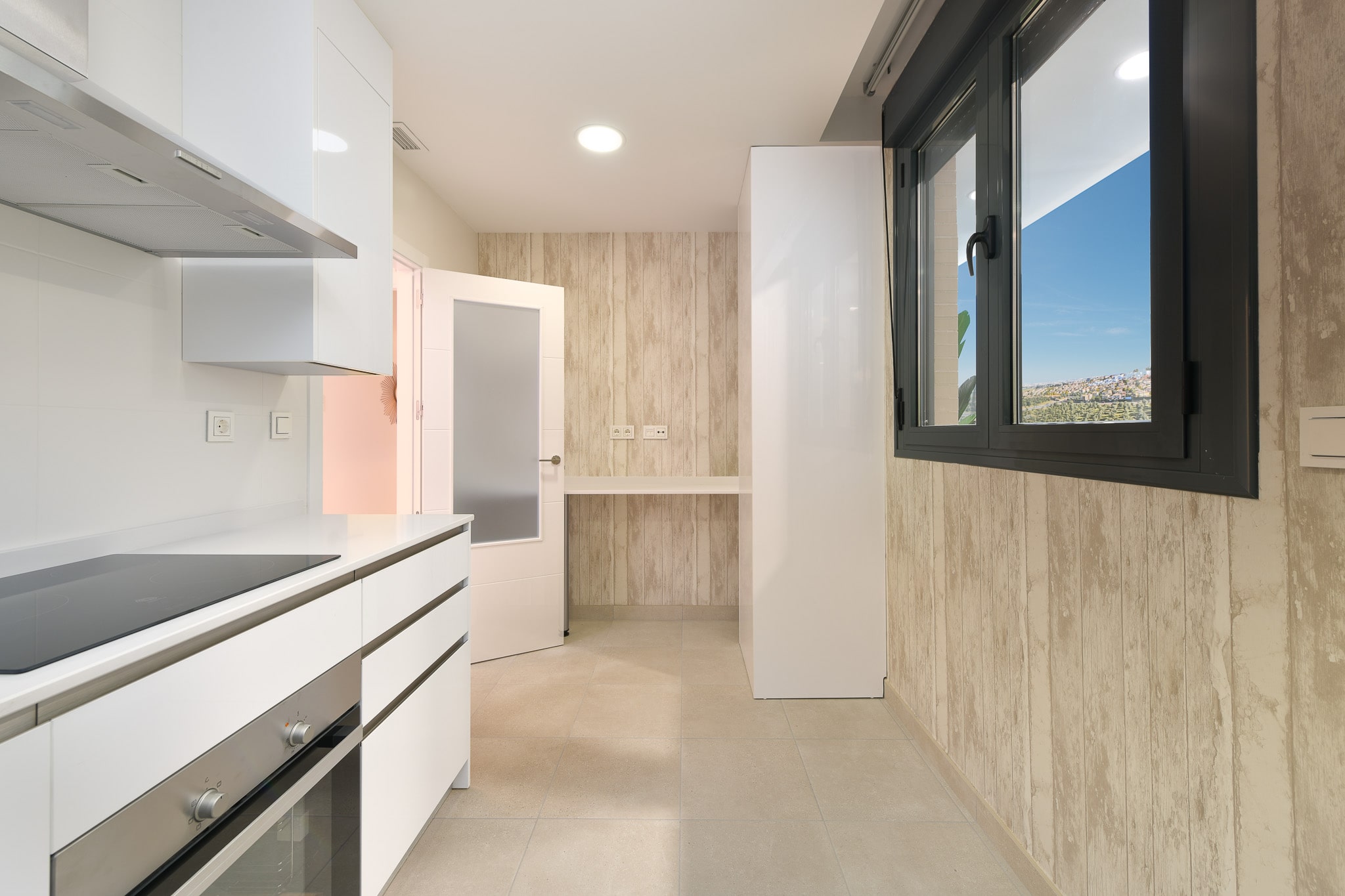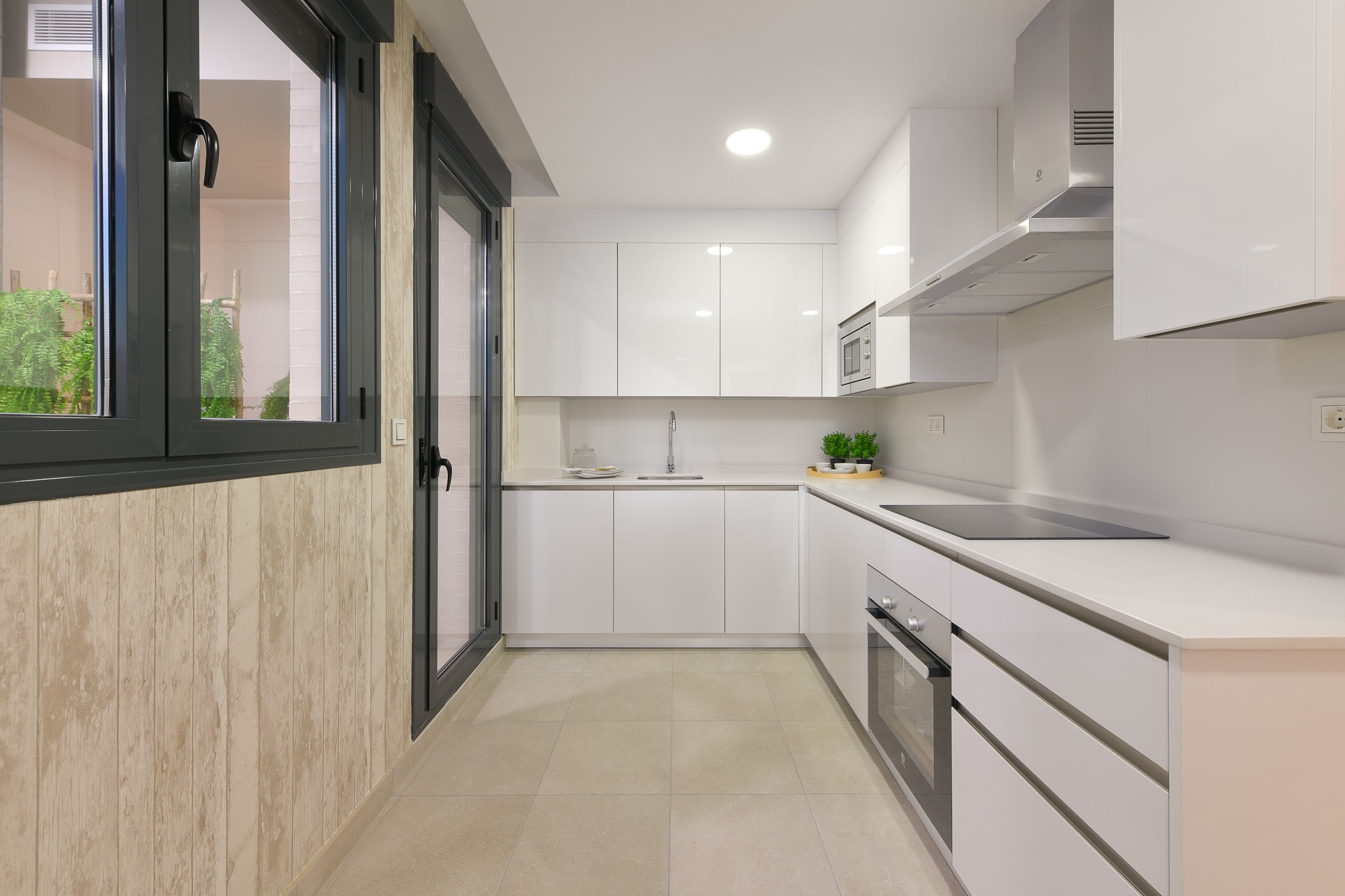 Las viviendas de Selecta Hermes se entregan con cocinas amuebladas con encimera de Silestone o similar calidad, con grifo monomando, fregadero, campana extractora, placa vitrocerámica, horno y microondas. Aire acondicionado y armarios empotrados en dormitorios y distribuidor.