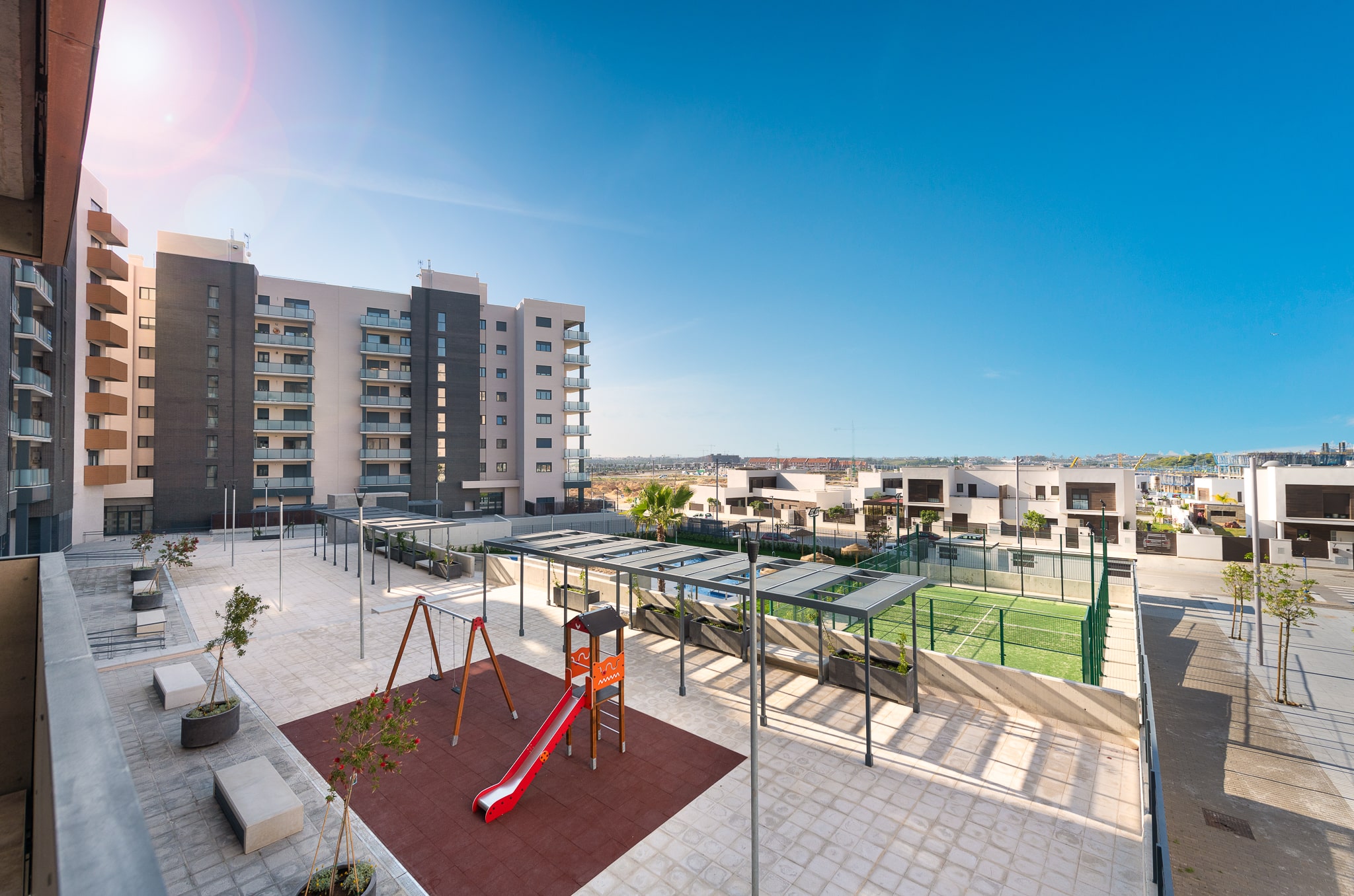 Con 3.000 m² de zonas comunes, jardines, piscinas, pista de pádel y un a zona de juegos para los más pequeños.