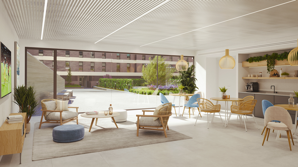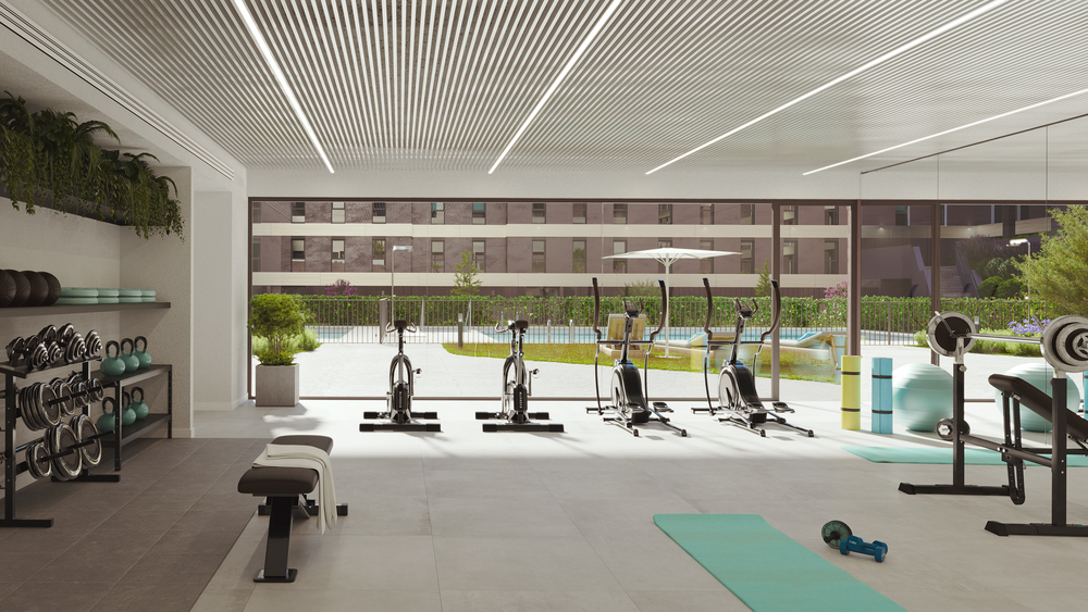 Otra particularidad que destacar del residencial son sus completas zonas comunes, club social de uso exclusivo, gimnasio y piscina, tanto para niños como para adultos. Además, cuenta con un parking subterráneo con plazas de aparcamiento, trasteros y superficie destinada a uso comercial.