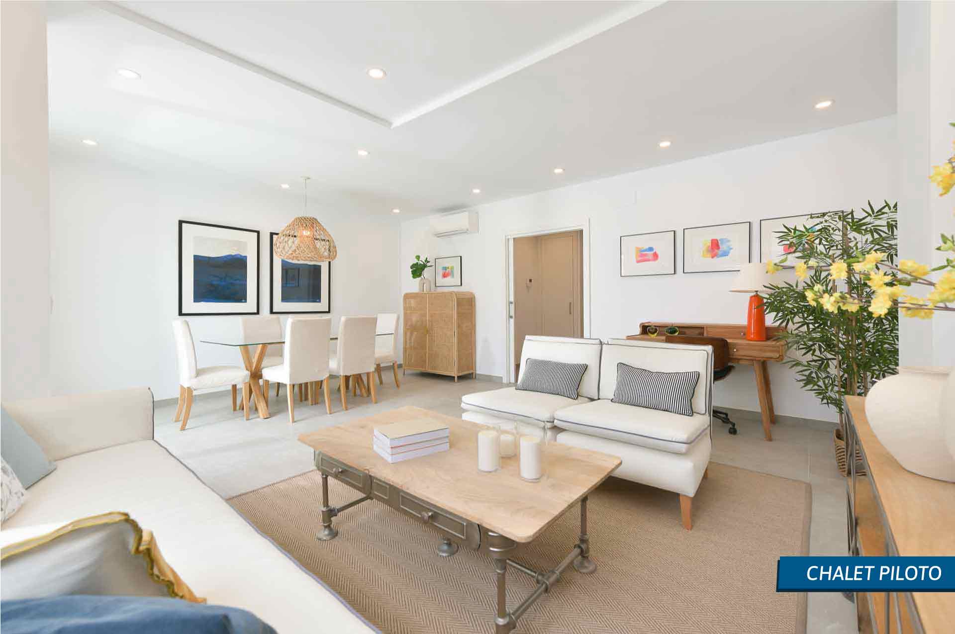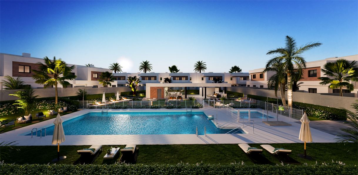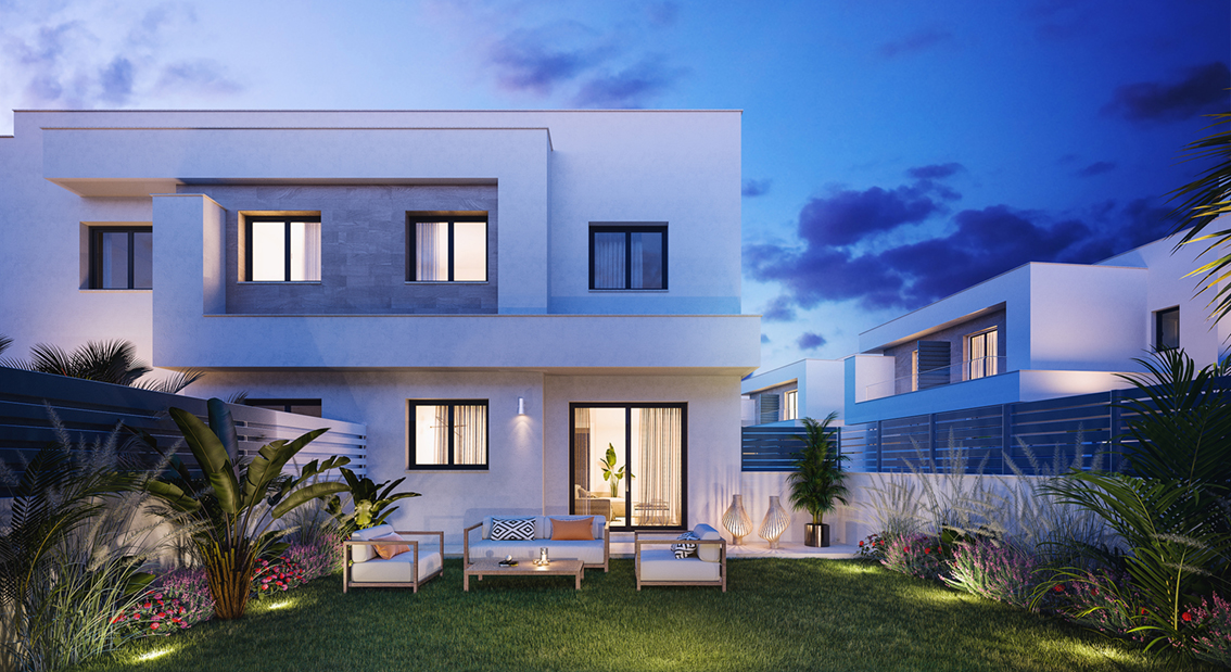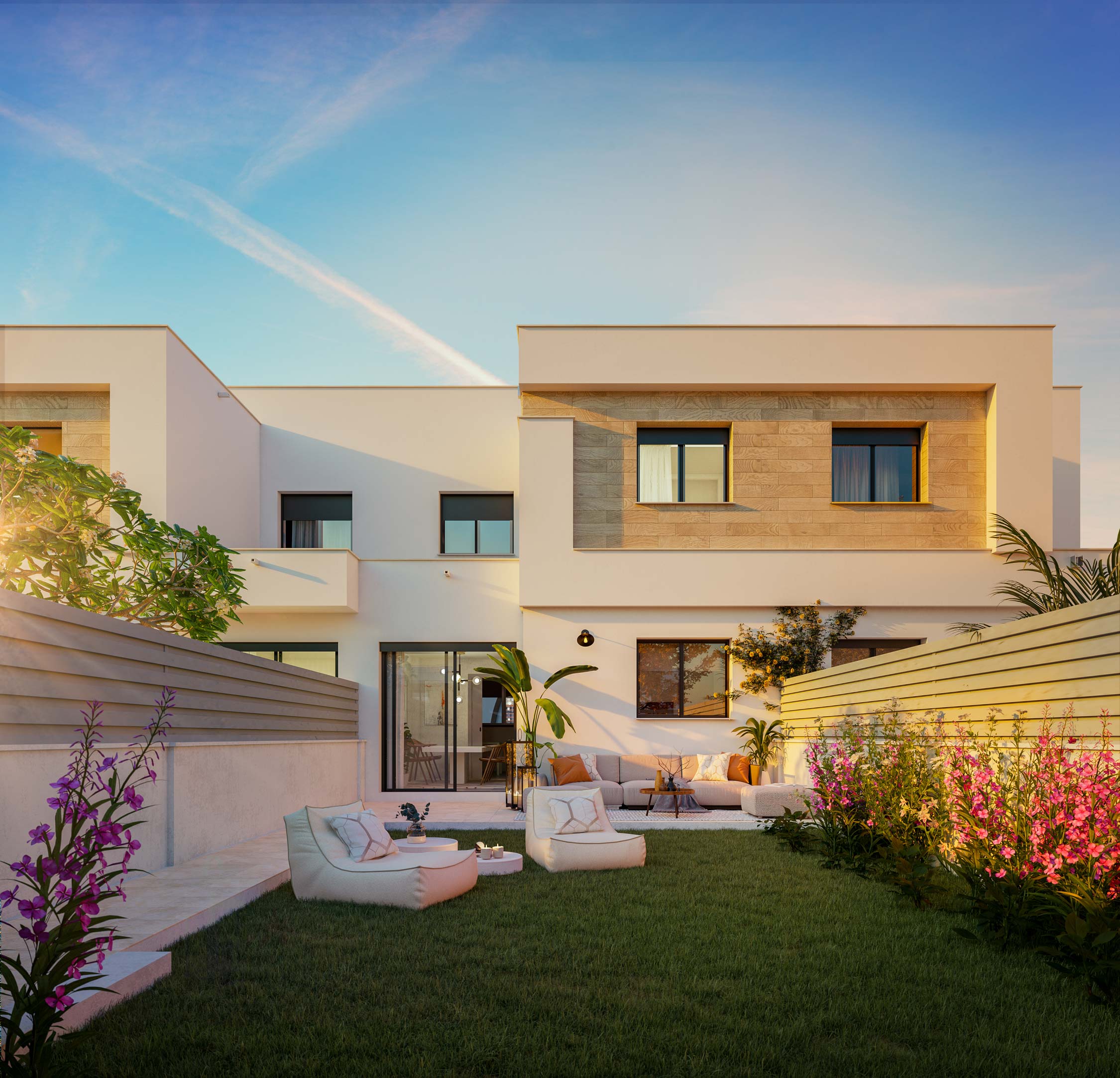 Las viviendas, de 3 y 4 dormitorios, se entregan con cocinas equipadas con encimera, fregadero, campana extractora, placa vitrocerámica, horno y microondas, y la instalación de aire acondicionado. Todas las viviendas cuentan con porche, jardín y plaza de aparcamiento privado.