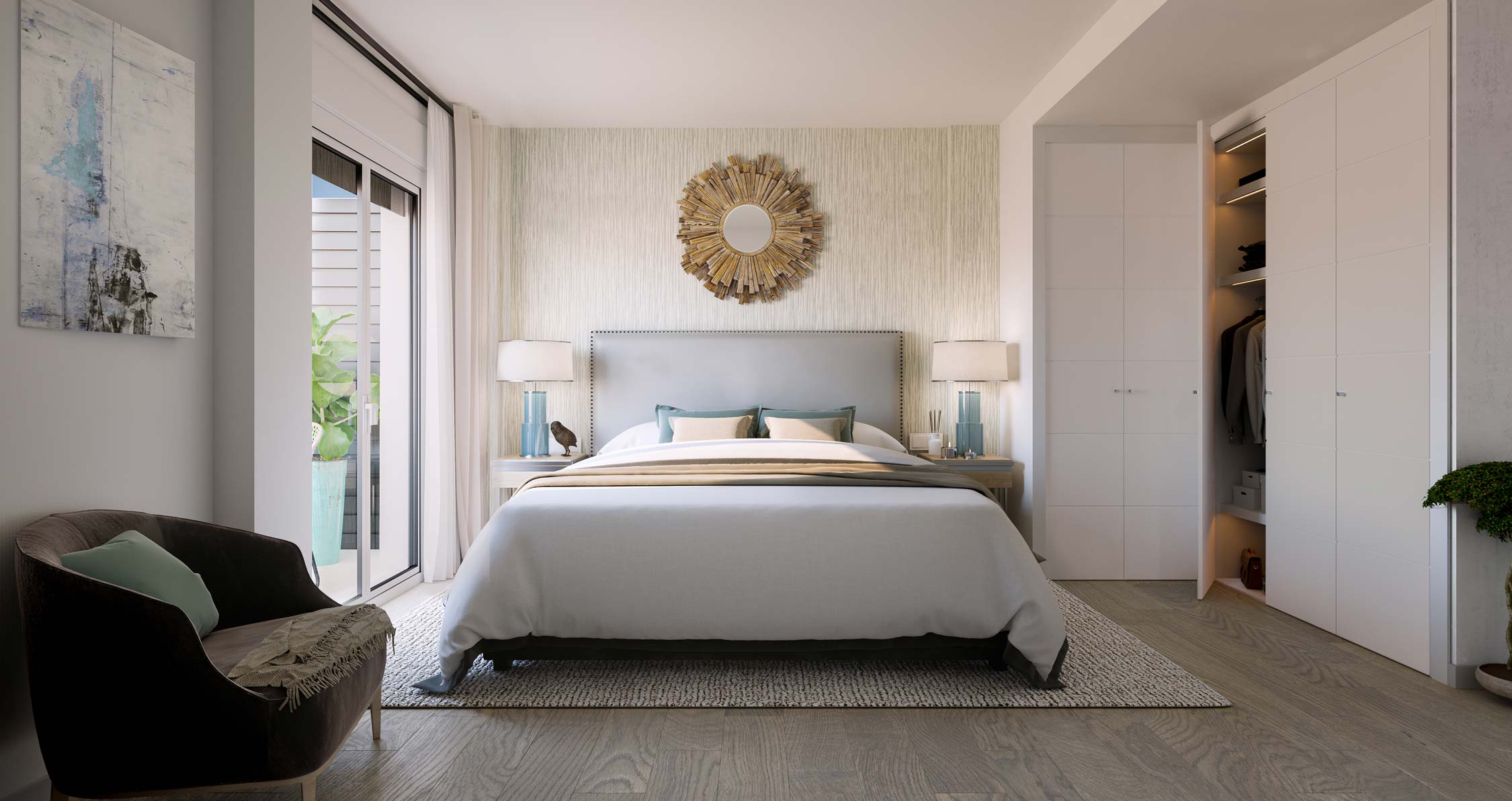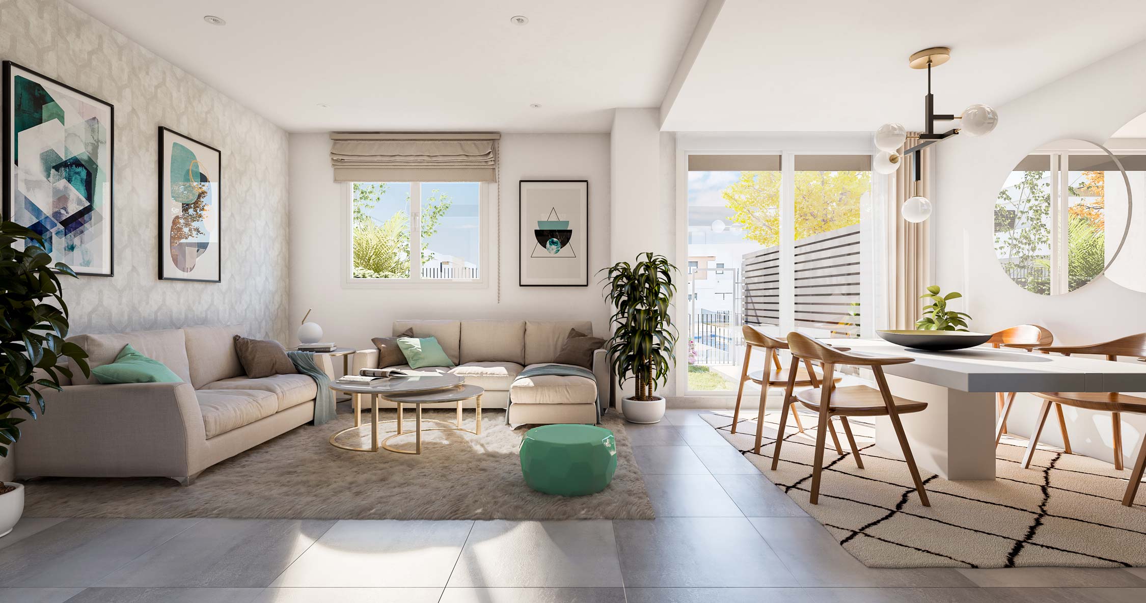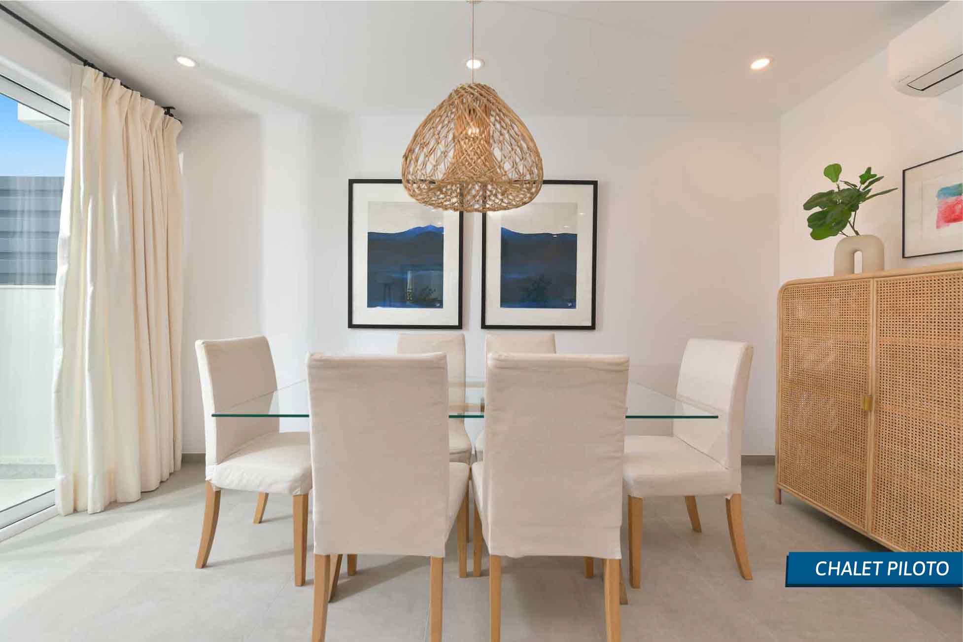Las viviendas, de 3 y 4 dormitorios, se entregan con cocinas equipadas con encimera, fregadero, campana extractora, placa vitrocerámica, horno y microondas, y la instalación de aire acondicionado. Todas las viviendas cuentan con porche, jardín y plaza de aparcamiento privado.