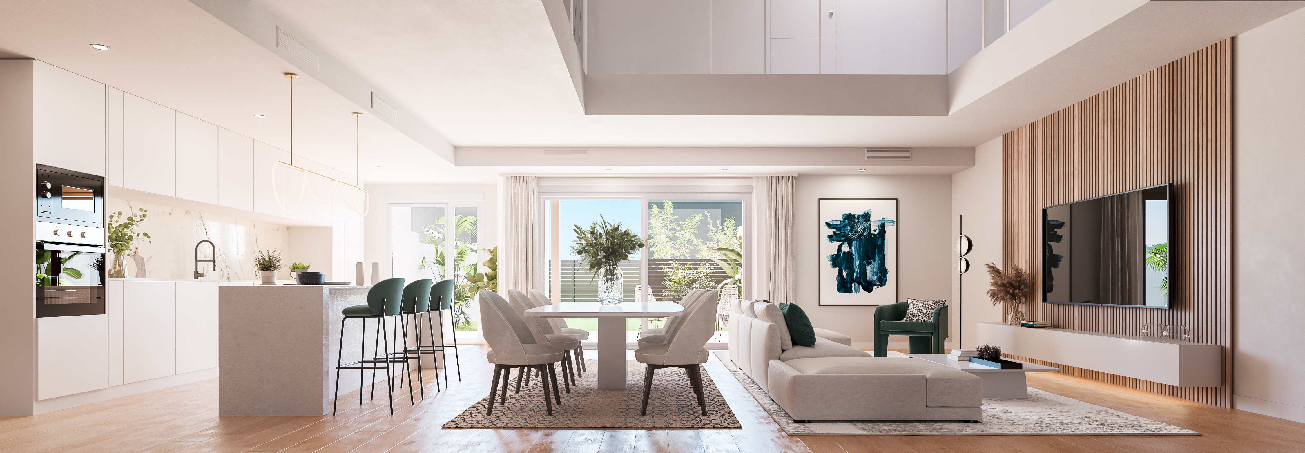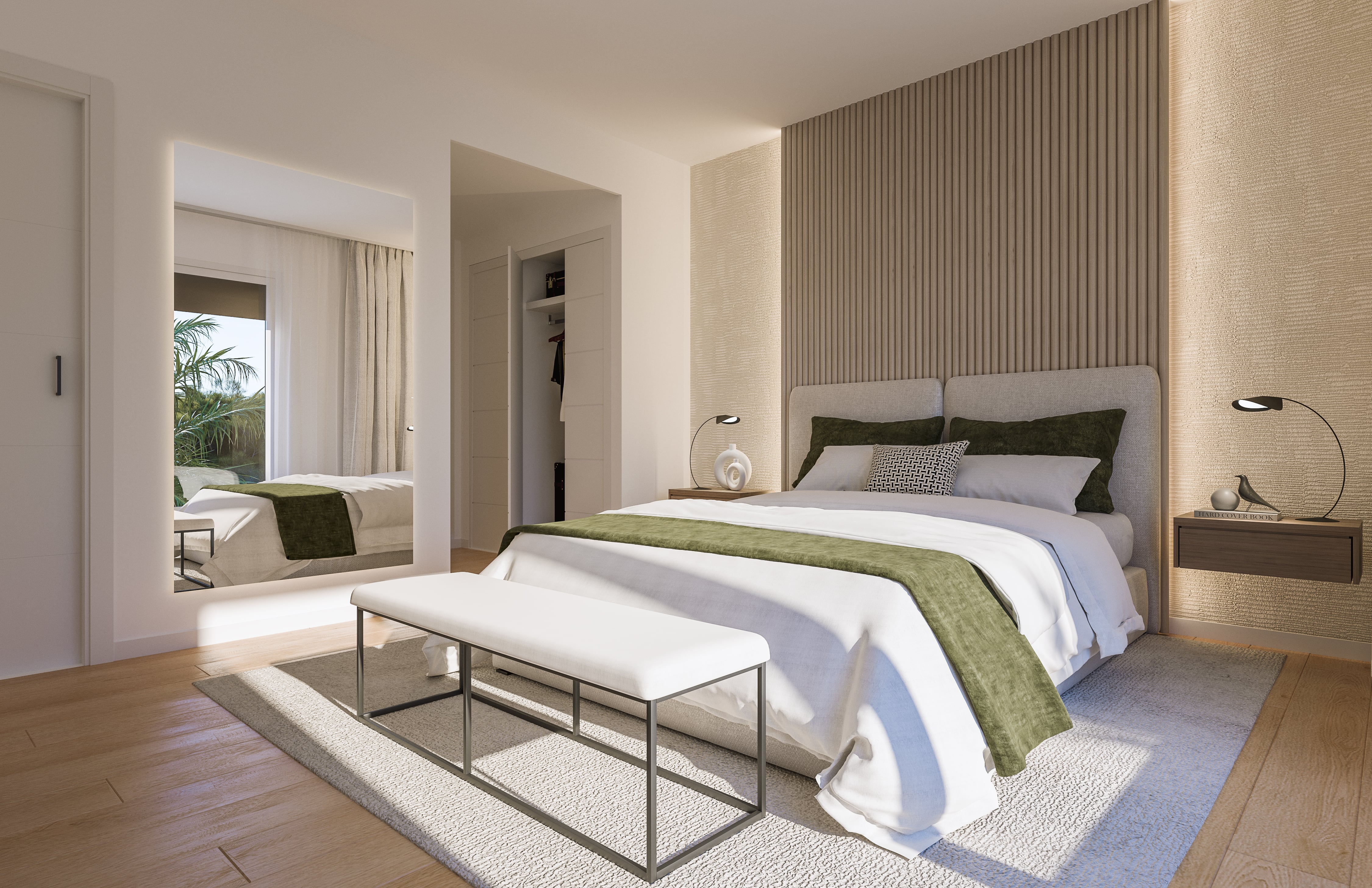 Esta promoción cuenta con excelentes orientaciones y la distribución interior está cuidada al máximo detalle. 4 de sus 5 dormitorios se ubican en la primera planta garantizando el confort y la independencia. Además, junto a sus amplios dormitorios principales con vestidor y baño en suite, tendrás la oportunidad de tener tu propio espacio de teletrabajo gracias a sus excelentes habitaciones que podrás elegir como despacho o dormitorio.