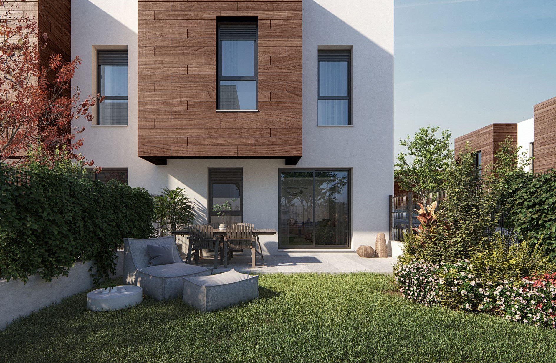Chalets de arquitectura vanguardista, diseñados en 2 plantas para dejar paso a la fluidez de los espacios. Jardines privados que dan acceso al interior de la urbanización privada para que las más de 2.000m² de zonas comunes sean una extensión más de tu casa.
