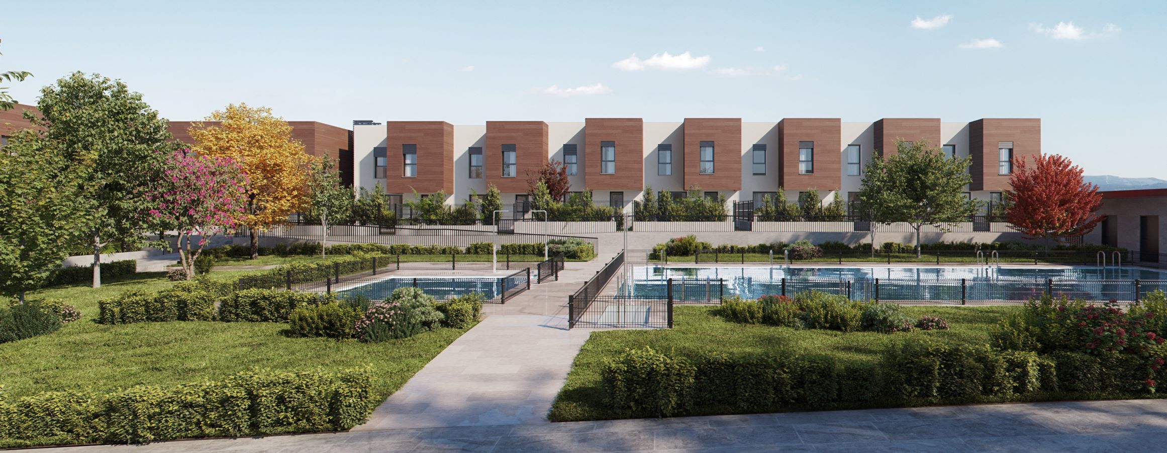 Jardines del Olivar es una promoción de chalets adosados de 4 dormitorios con 3 cuartos de baño en urbanización cerrada con control de acceso, piscina salina de adultos e infantil, pádel, zona de juegos para los más pequeños y unas zonas comunes incomparables.