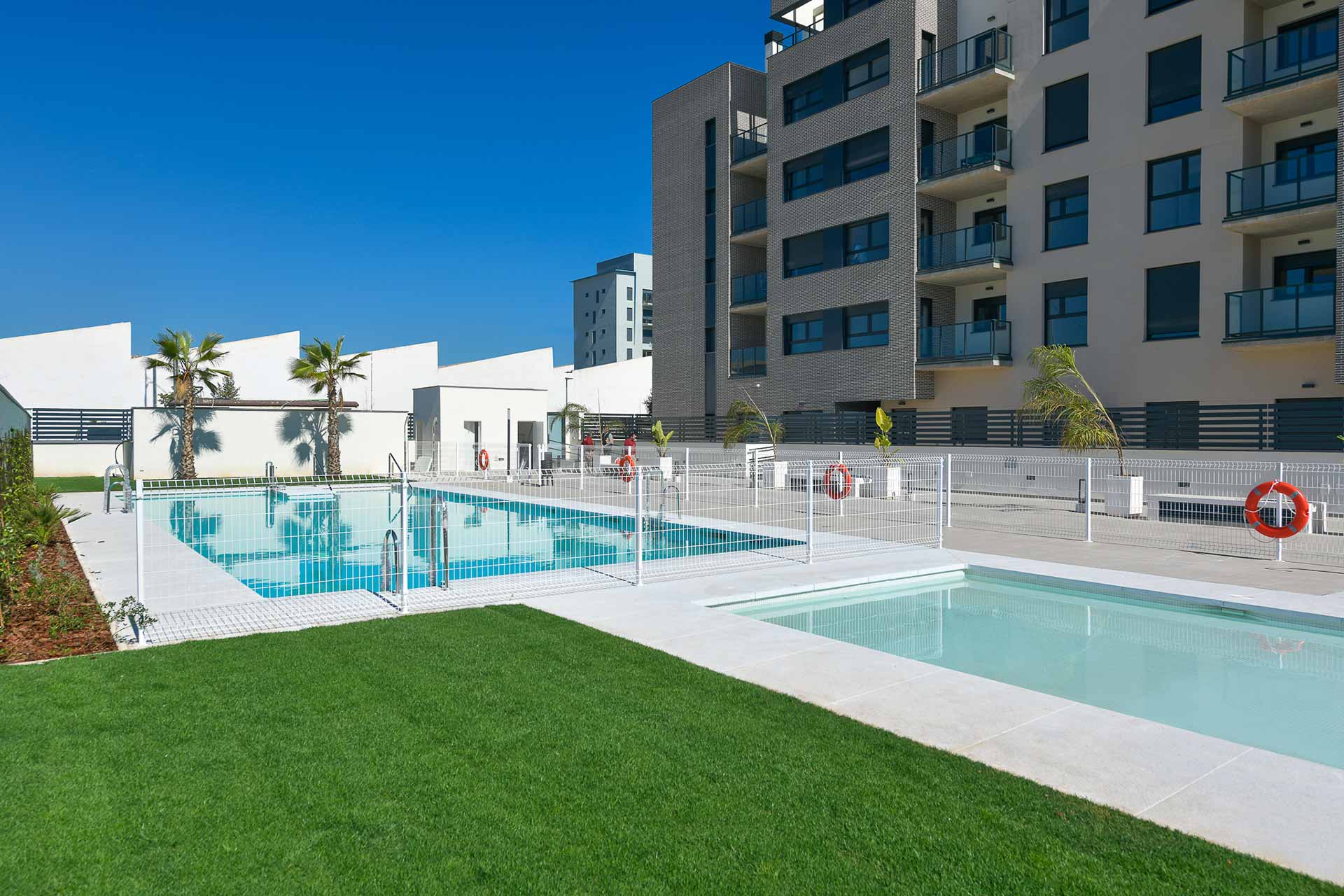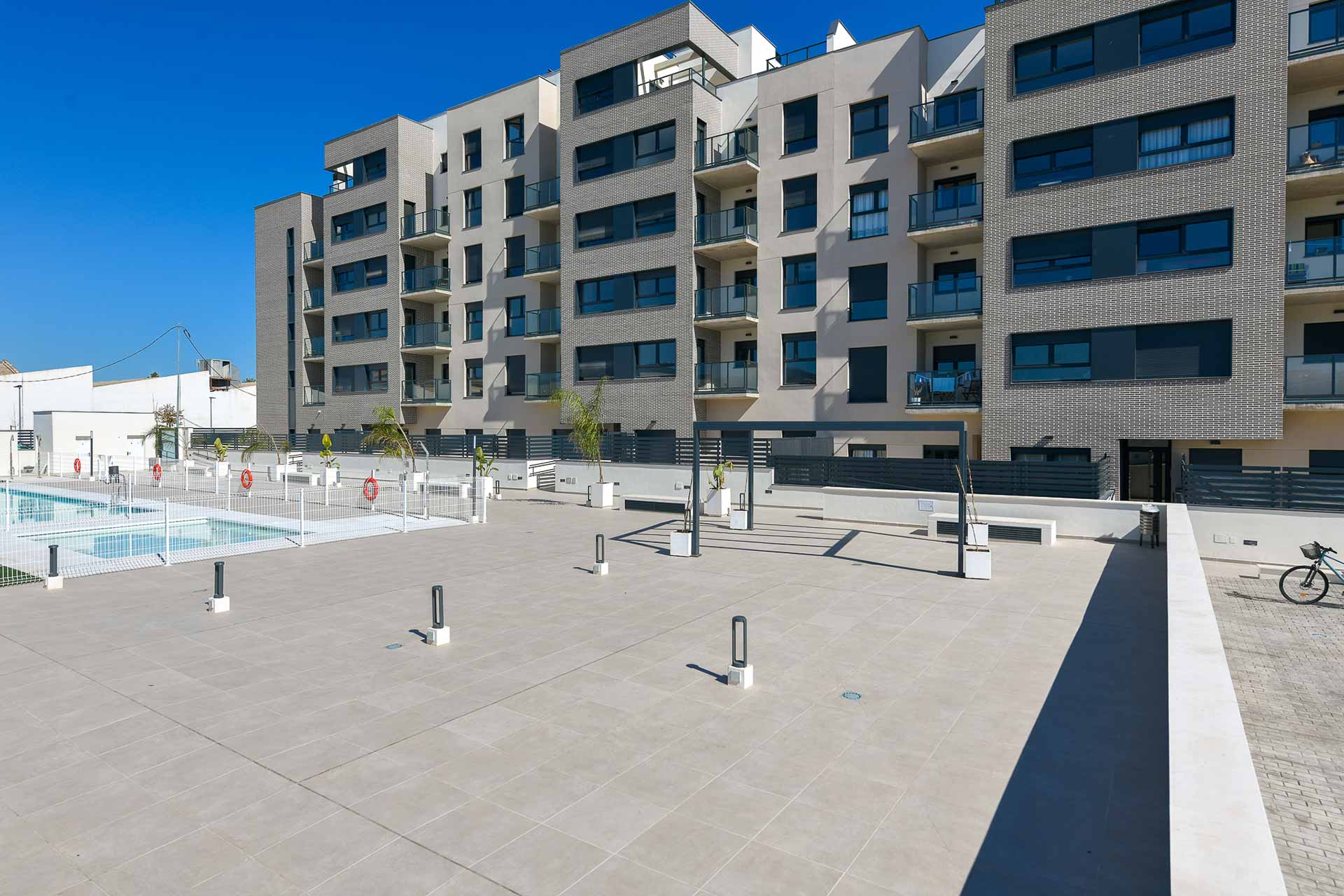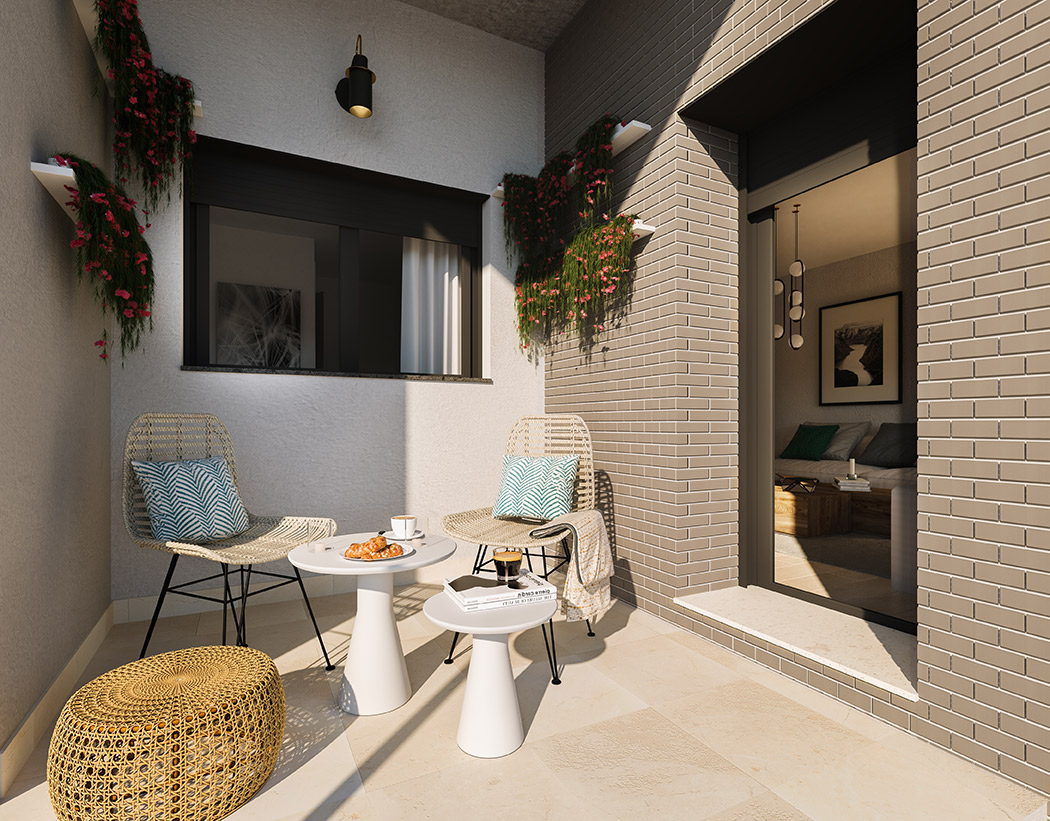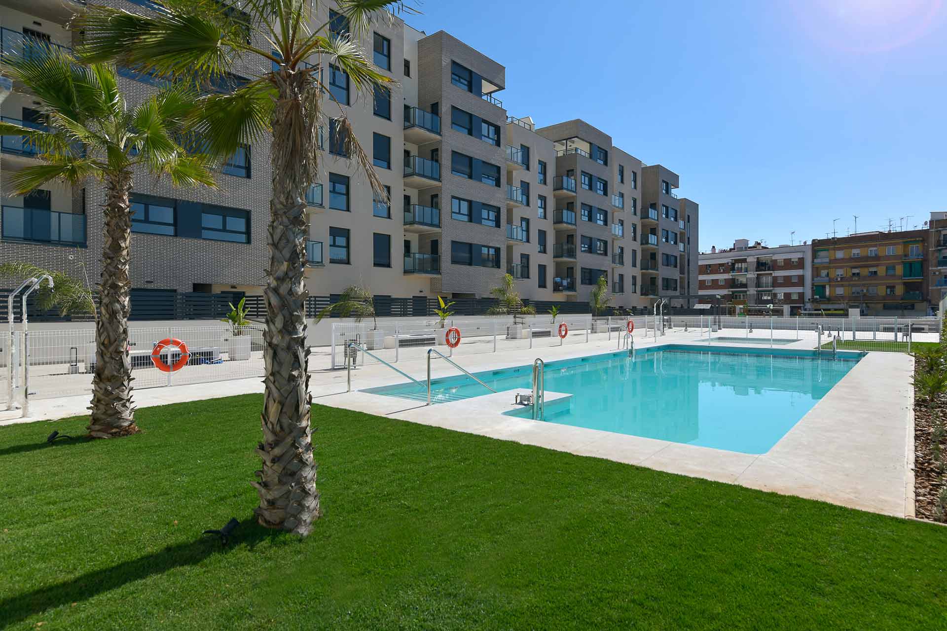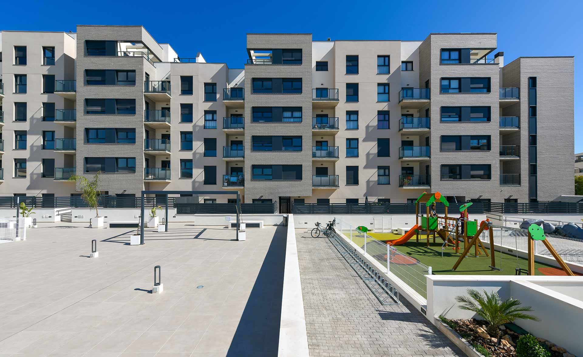 Terrazas de Santa Rosa es un residencial de viviendas de 2, 3 y 4 dormitorios diseñadas para aquellos que necesitan más espacio en su día a día, con terrazas, unas excelentes calidades y cocinas equipadas con placa vitrocerámica, horno, microondas y campana extractora, instalación de aire acondicionado y garaje y trastero incluidos en el precio. Además, se suman cerca de 2.000 metros cuadrados de zonas comunes con área de juegos infantiles, piscina para adultos y niños, bicicletero y zonas ajardinadas.