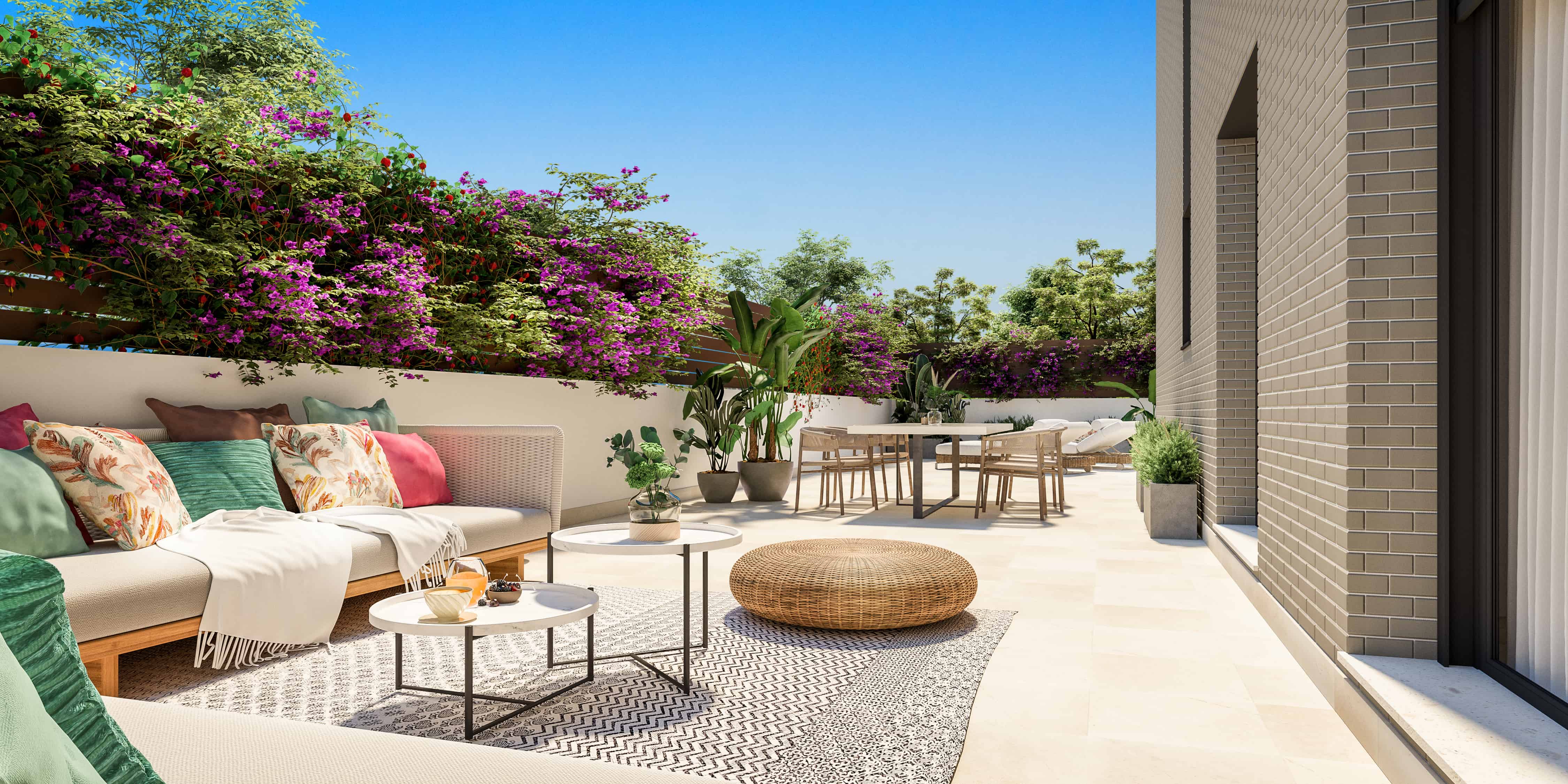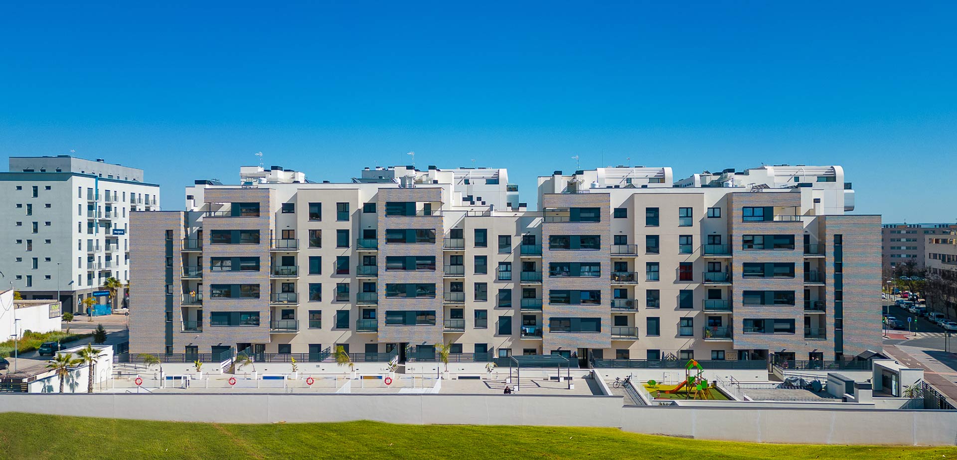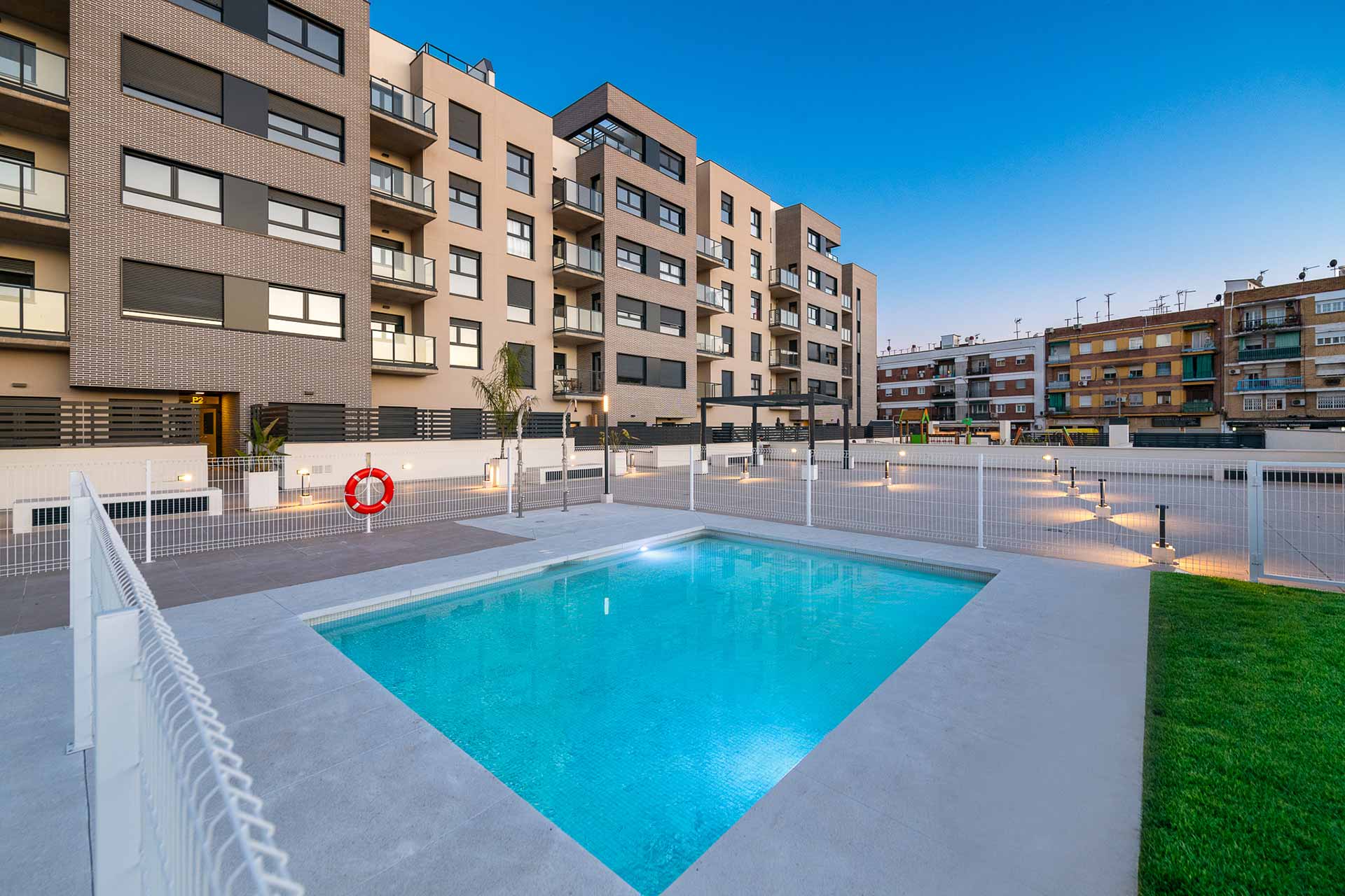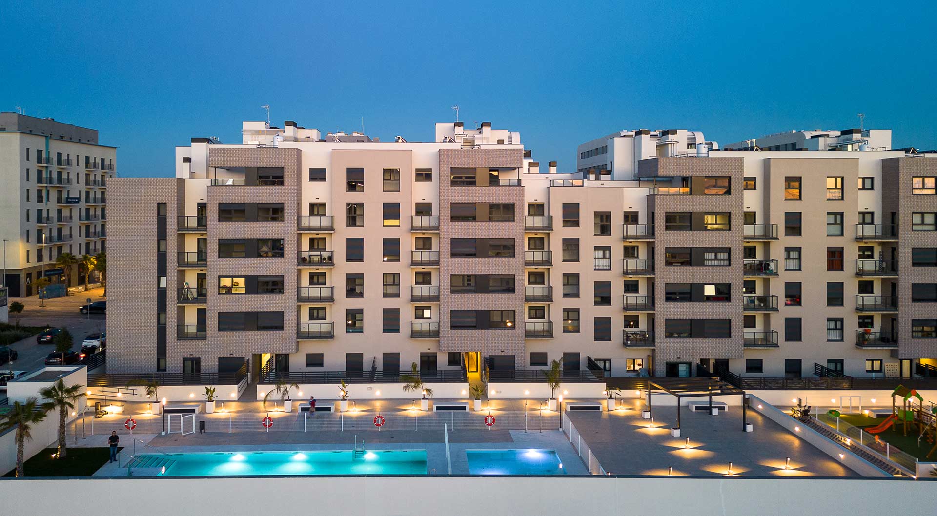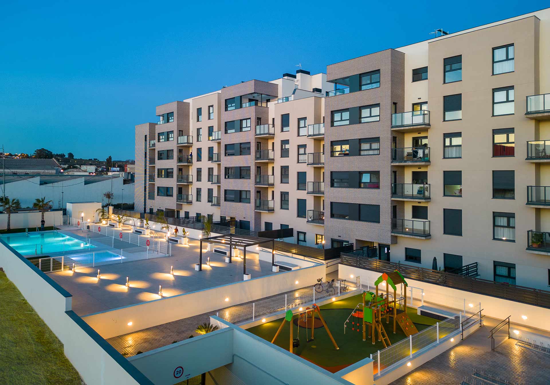 Terrazas de Santa Rosa es un residencial de viviendas de 2, 3 y 4 dormitorios diseñadas para aquellos que necesitan más espacio en su día a día, con terrazas, unas excelentes calidades y cocinas equipadas con placa vitrocerámica, horno, microondas y campana extractora, instalación de aire acondicionado y garaje y trastero incluidos en el precio. Además, se suman cerca de 2.000 metros cuadrados de zonas comunes con área de juegos infantiles, piscina para adultos y niños, bicicletero y zonas ajardinadas.