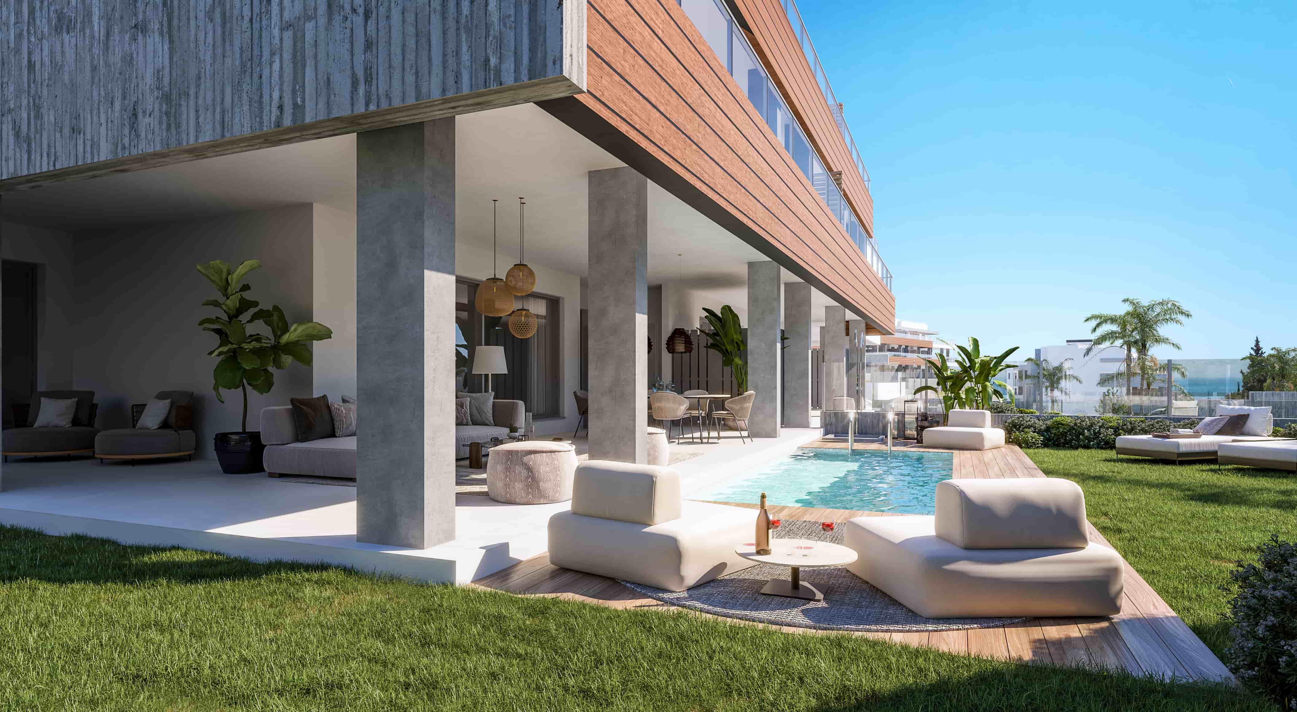 Un innovador y elegante residencial de 96 viviendas, compuesto por apartamentos de 2 y 3 dormitorios con amplios espacios, excelentes calidades, grandes ventanales y extensas terrazas, todas con orientación oeste para deleitarse de magníficas vistas al mar Mediterráneo. Los bajos disfrutan de jardín con piscina privada, y los áticos de un estupendo solárium con opción de incorporar piscina.