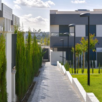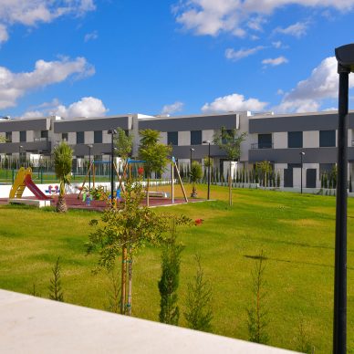 La promoción está compuesta de 54 chalets adosados caracterizados por su amplitud, acertada distribución y líneas actuales. Las viviendas se desarrollan en dos plantas, con dos baños y tres dormitorios en la planta superior y recibidor, cocina, baño, salón y comedor/estancia polivalente en la planta baja.