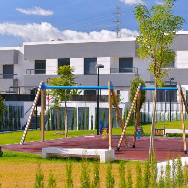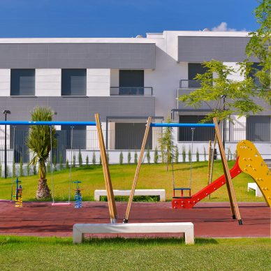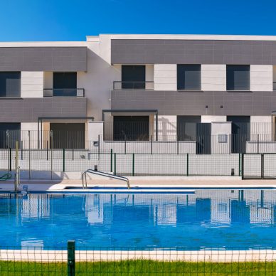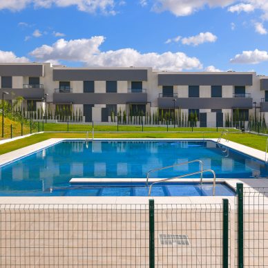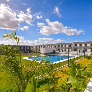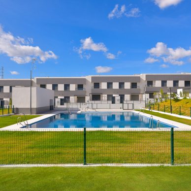 Todas las viviendas cuentan con dos patios de uso privativo, uno delantero destinado a acceso y estacionamiento de vehículo y uno trasero. Y cuenta con unas zonas comunes con piscina, zonas verdes y zona infantil.
