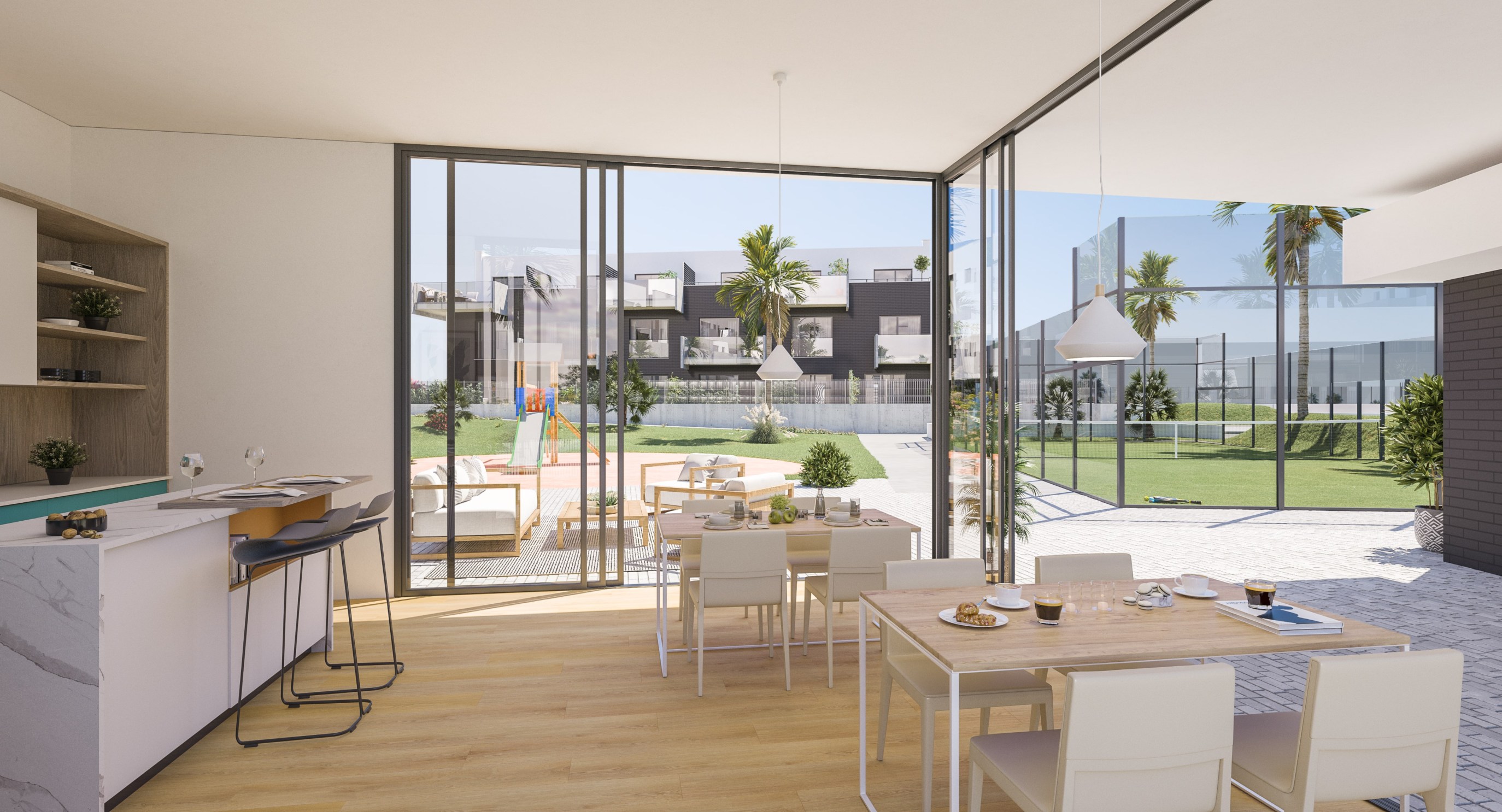También cuenta con amplias zonas comunes pensadas para toda la familia, con piscina de agua salada, zonas verdes, pista de pádel y sala multiusos.