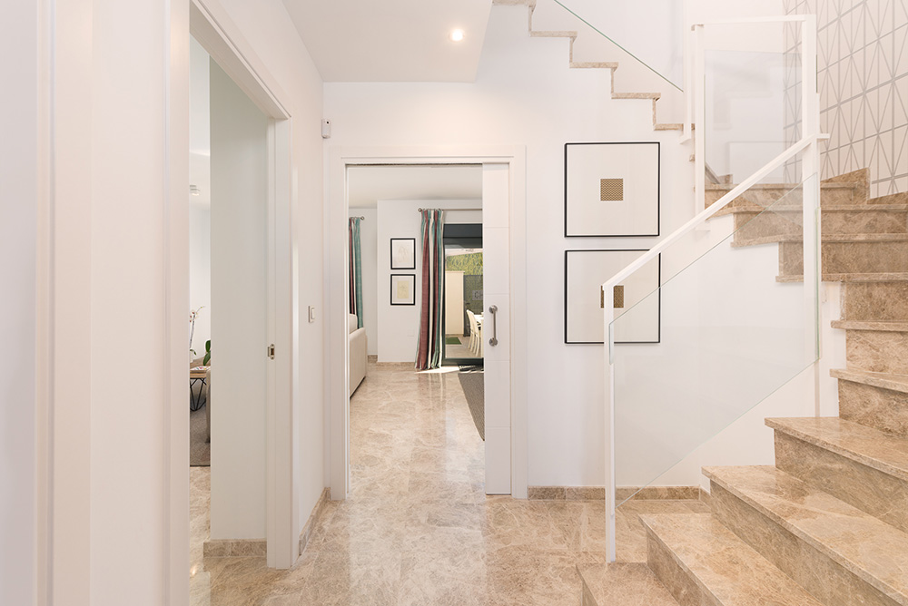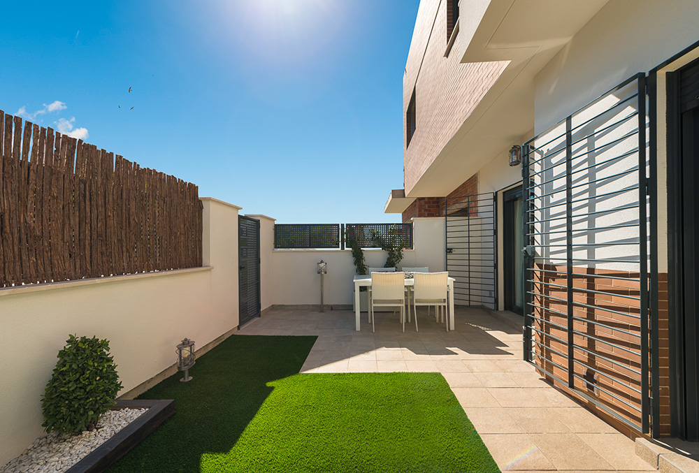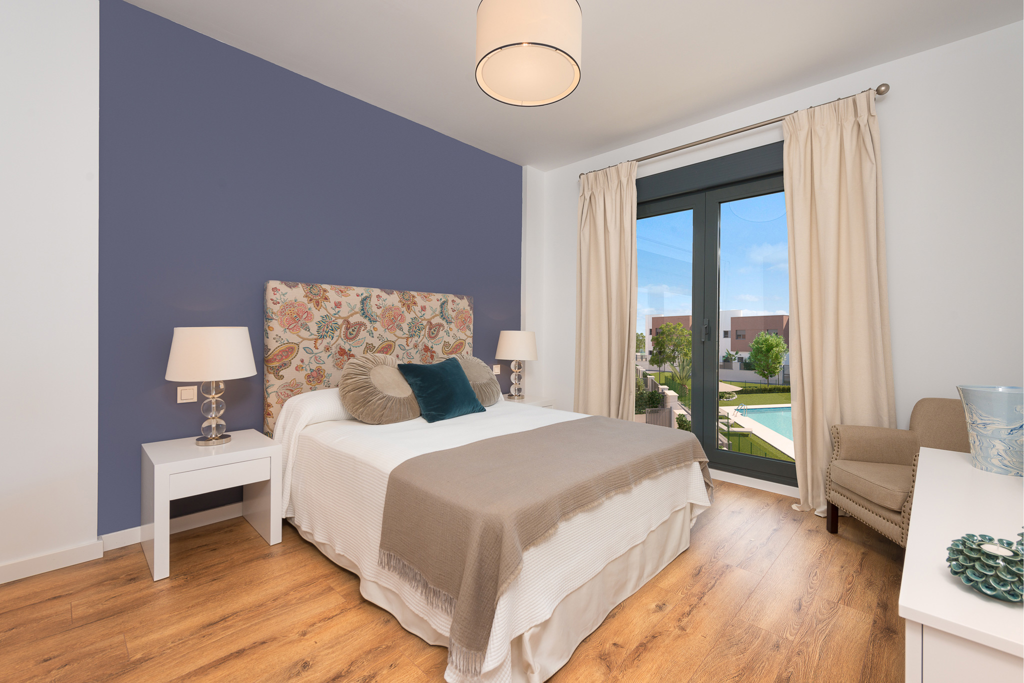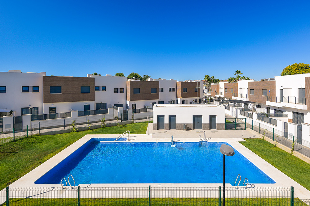 Chalet de 3 dormitorios con amplios patios y con salida directa a la piscina, con unas calidades excelentes. Cuentan con cocina amueblada con electrodomésticos, 3 baños exteriores con luz natural, terraza en el dormitorio principal, climatización por estancias y armarios revestidos.